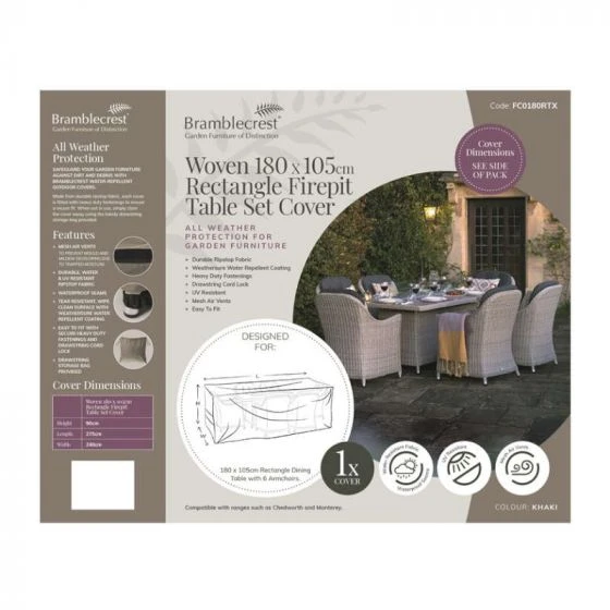Protect your furniture set from the elements with our water repellent furniture covers. Made from a durable, tear resistant fabric, the cover is easy to fit and secure with a drawstring cord lock.