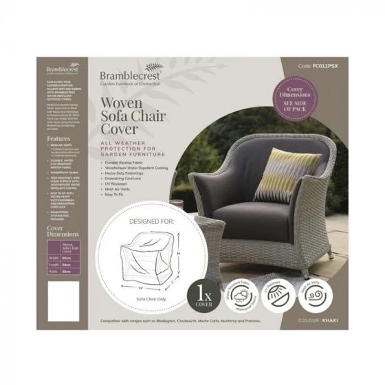 Protect your woven chair from the elements with a Bramblecrest furniture cover. Made from a water repellent, tear resistant fabric, each cover is easy to fit and secure with a drawstring cord lock.