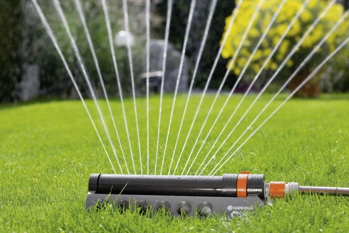 The Gardena aquazoom sprinkler offers a wide range of options for gardens of varying sizes.