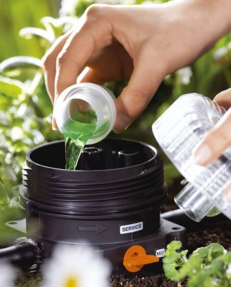 The Gardena fertiliser dispenser is compatible with the micro-drip-system and is the ideal component available for mixing liquid fertiliser for healthier plants.