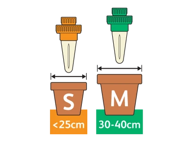 1. Select the Aquasolo cone according to the size of your pot and choose the bottle size for the required duration.