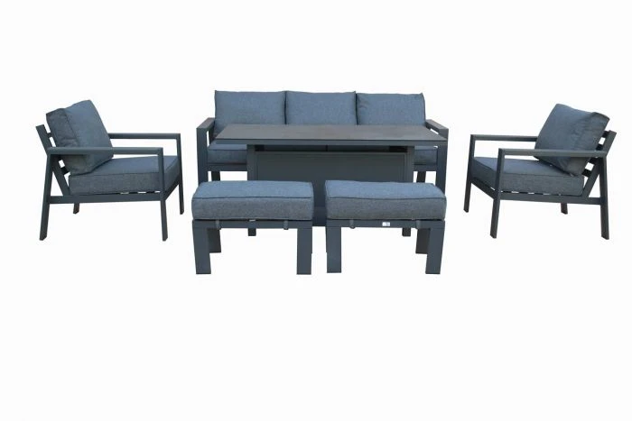 The Livorno deluxe lounge has versatile seating with its 3 seater sofa, two opulent lounge chairs and padded stools. The sleek Carbon Black frames and complementary black cushions creates a bold, fresh look to your outdoor area. The supportive back bars gives the Livorno chair a powerful characteristic and with the large plump back cushions, the comfort is unforgettable. The thick Polywood armrests fit in nicely with the powder-coated frames creating an extra depth to the Livorno’s overall style. The summer-proof cushions in the Livorno range provide optimal comfort. All cushion covers are zipped for easy cleaning and the fabric is designed to resist damp and to assist drying.