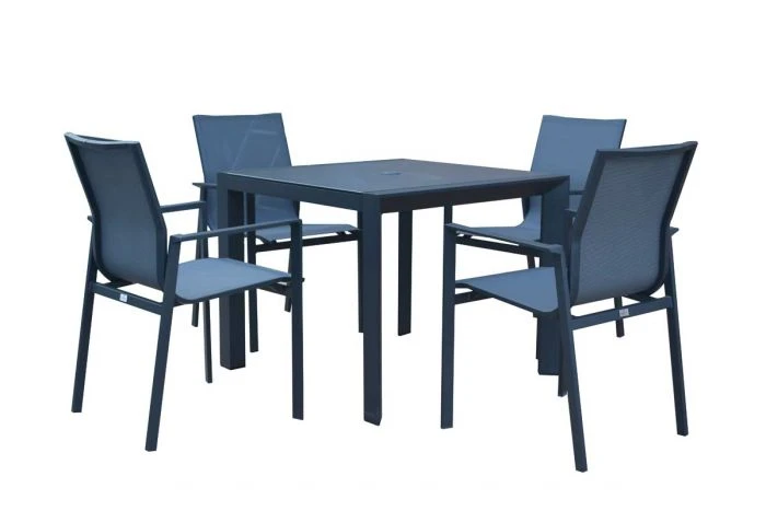 This innovative range combines high-quality aluminium and soothing textilene, and will be a lasting investment. The Carbon black chairs feature textilene slings which make them lightweight and easy to clean and beyond comfortable. Chairs are stackable for simple and straightforward storing.
