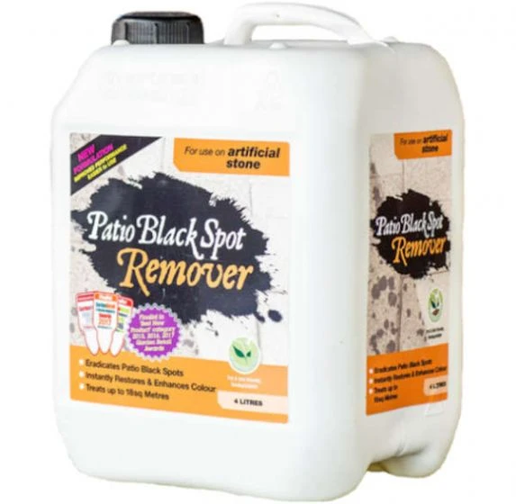 Patio Black Spot Remover for use on Artificial Stone is the only product currently manufactured to specifically and successfully remove ‘patio black spots and white spots’ that ruin the appearance of your pre-cast garden stonework.