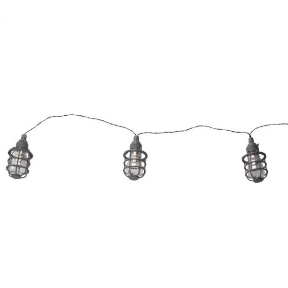 - Plastic caged string lights with filament effect
