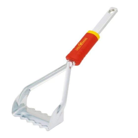 Wavy dual edge blade works backwards and forwards below soil level cutting through weeds.